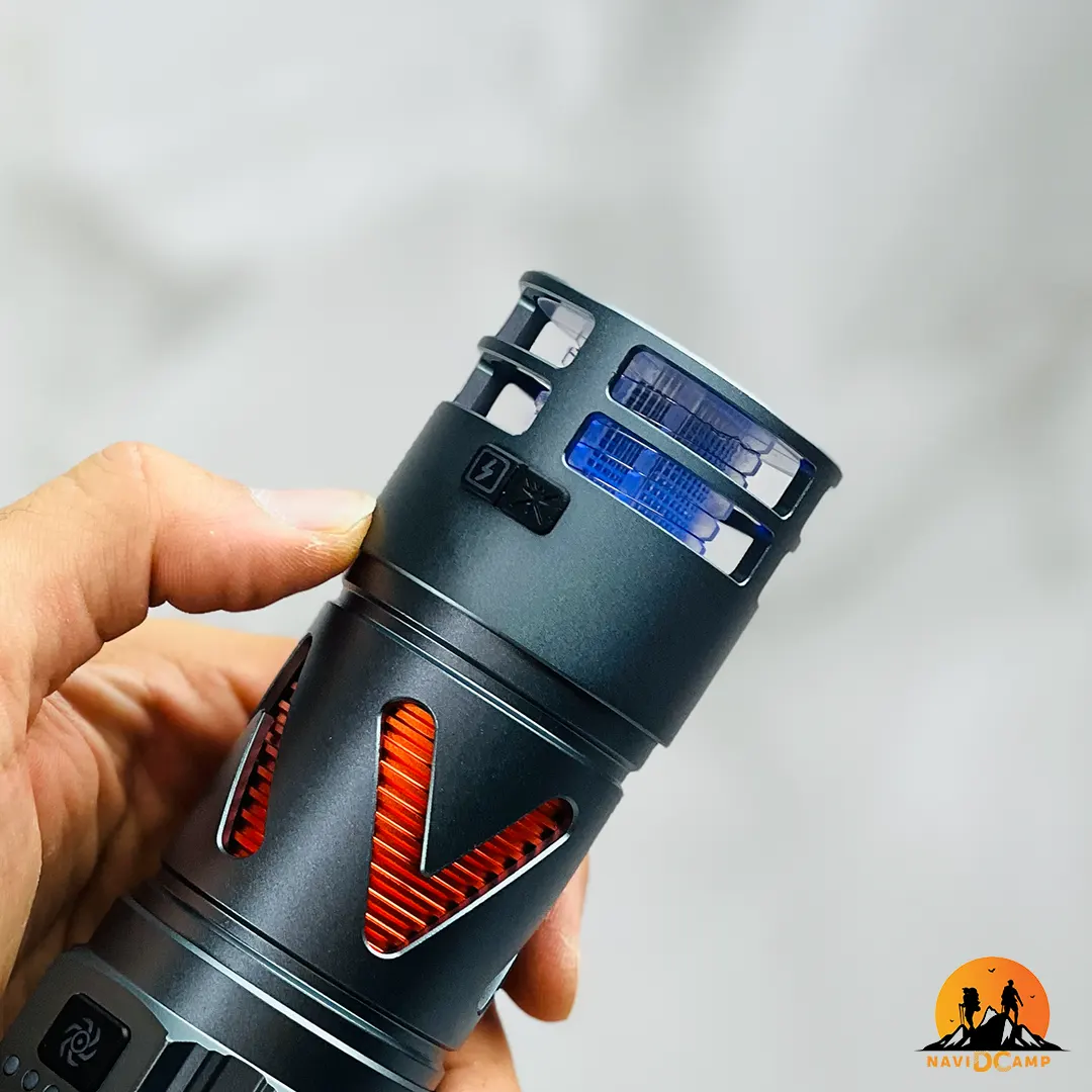 نقطه قوت دیگر این ابزار روشنایی چندمنظوره، منبع تغذیه عظیم آن است. دستگاه از یک باتری 40700A لیتیومی خاص بهره میبرد که ظرفیت باتری 9000 میلیآمپر را در اختیار کاربر قرار میدهد. این حجم از انرژی نه تنها ساعتها نوردهی مداوم را تضمین میکند، بلکه با داشتن خروجی USB، دستگاه را به یک پاوربانک قدرتمند برای شارژ موبایل در شرایط اضطراری تبدیل مینماید. وضعیت دقیق انرژی نیز توسط نشانگر شارژ باتری روی بدنه قابل رصد است.