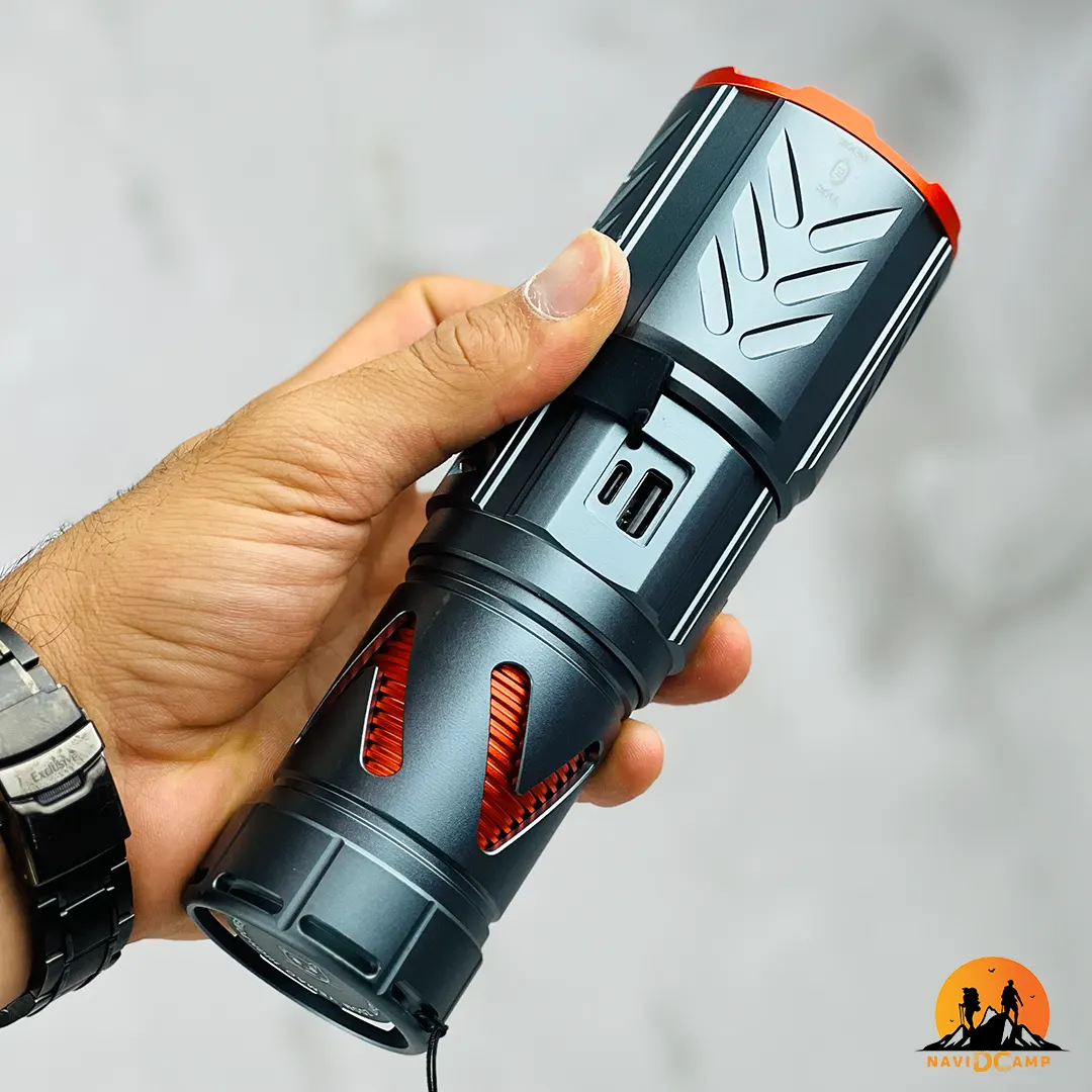 | ساختهشده از آلیاژ مقاوم با خاصیت ضد لغزش و ضد سایش | بدنه این چراغ قوه از آلیاژ مستحکم و سبک ساخته شده که در برابر ضربه، ساییدگی و لغزش دست مقاوم است؛ استفاده از آن در شرایط سخت مانند باران، گل یا گردوغبار بدون مشکل امکانپذیر است |