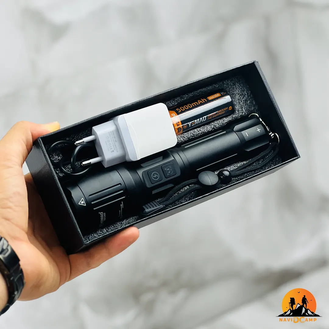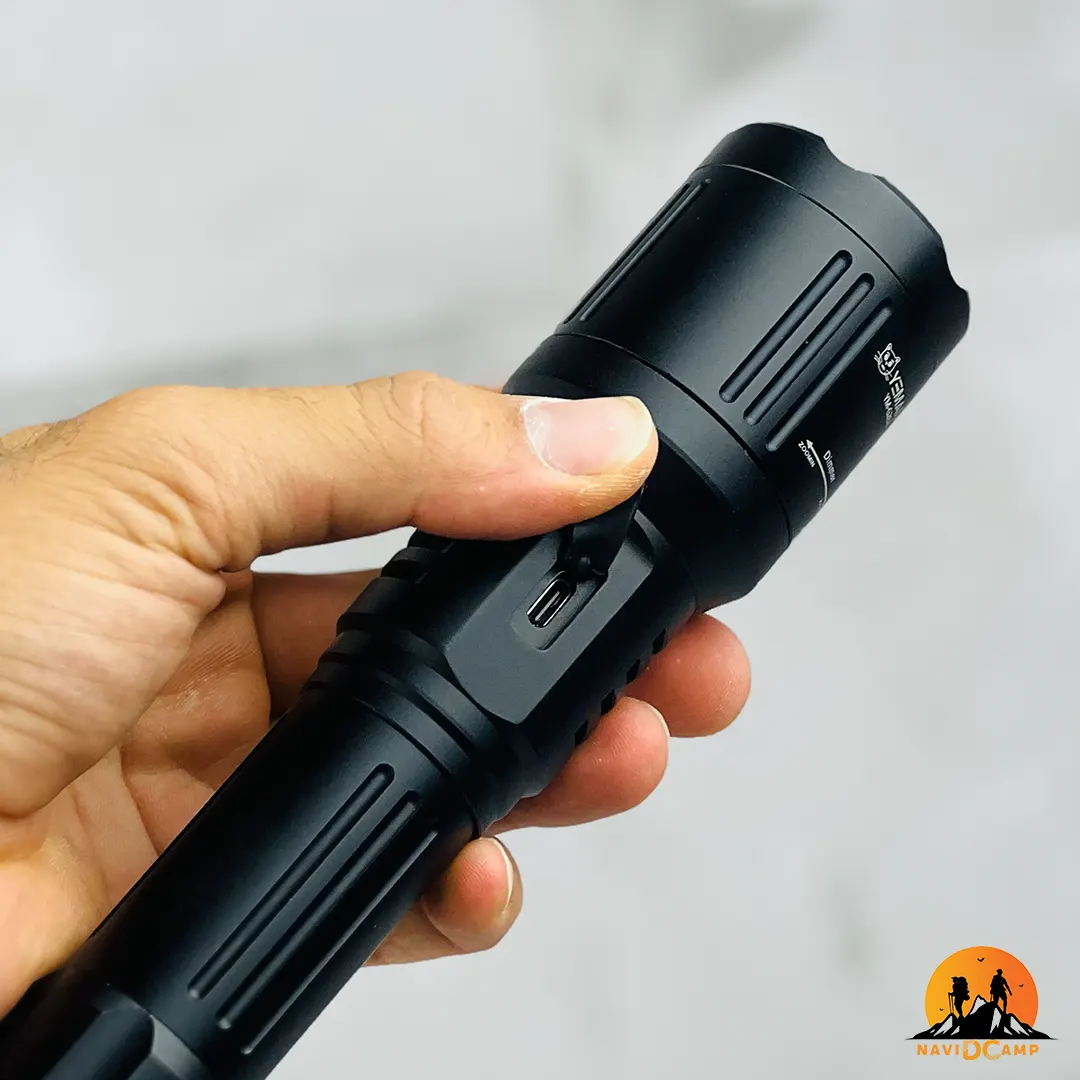 | برد نور 200 متر | نور خروجی این چراغ قوه تا 200 متر برد دارد که آن را برای کوهنوردی، کمپینگ یا شرایط اضطراری بسیار مناسب میکند |