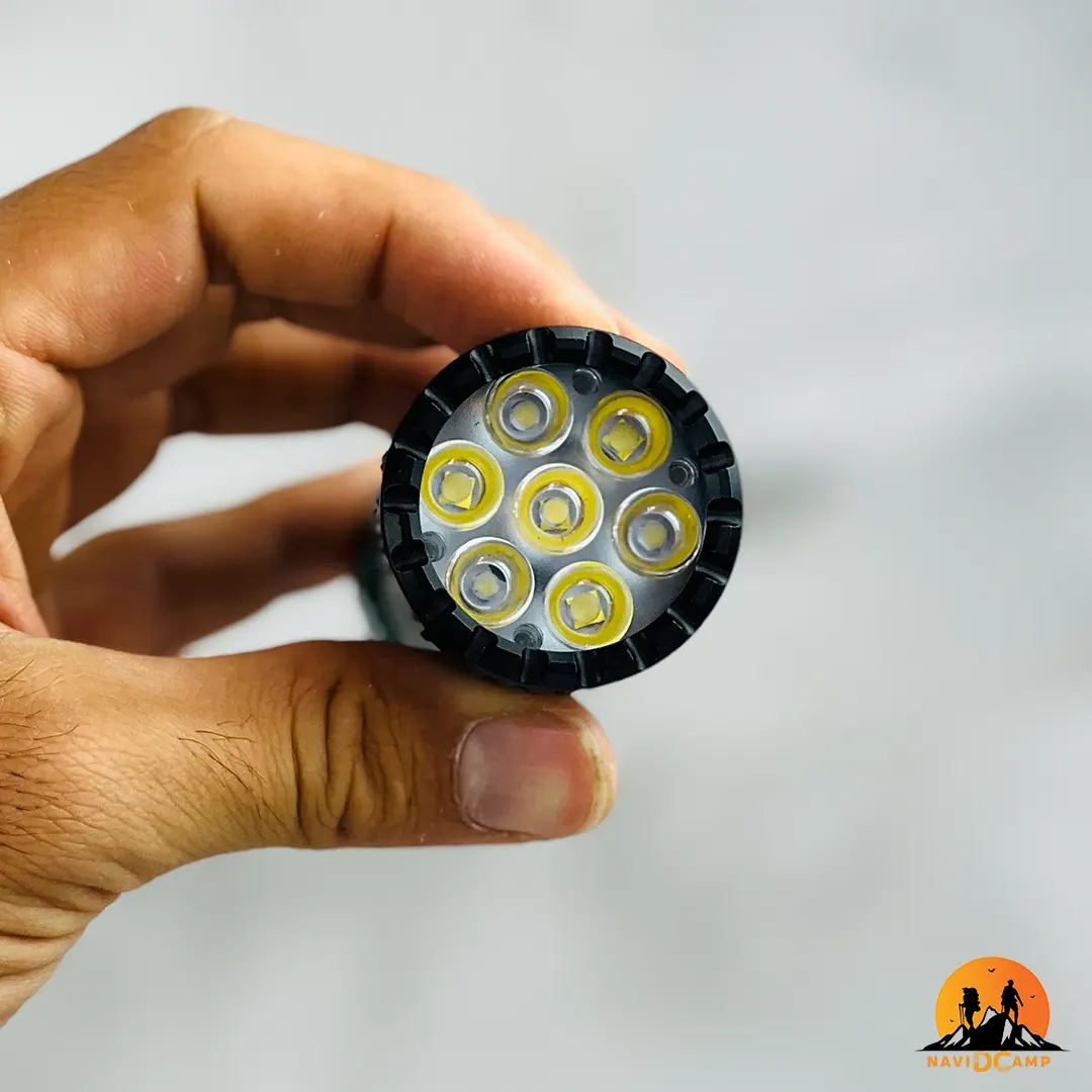 | لامپ قوی 7 عددی LED سفید | دارای 7 عدد لامپ LED با شدت نور بالا است که فضای گستردهای را روشن میکند و برای محیطهای تاریک کاملاً مناسب است |