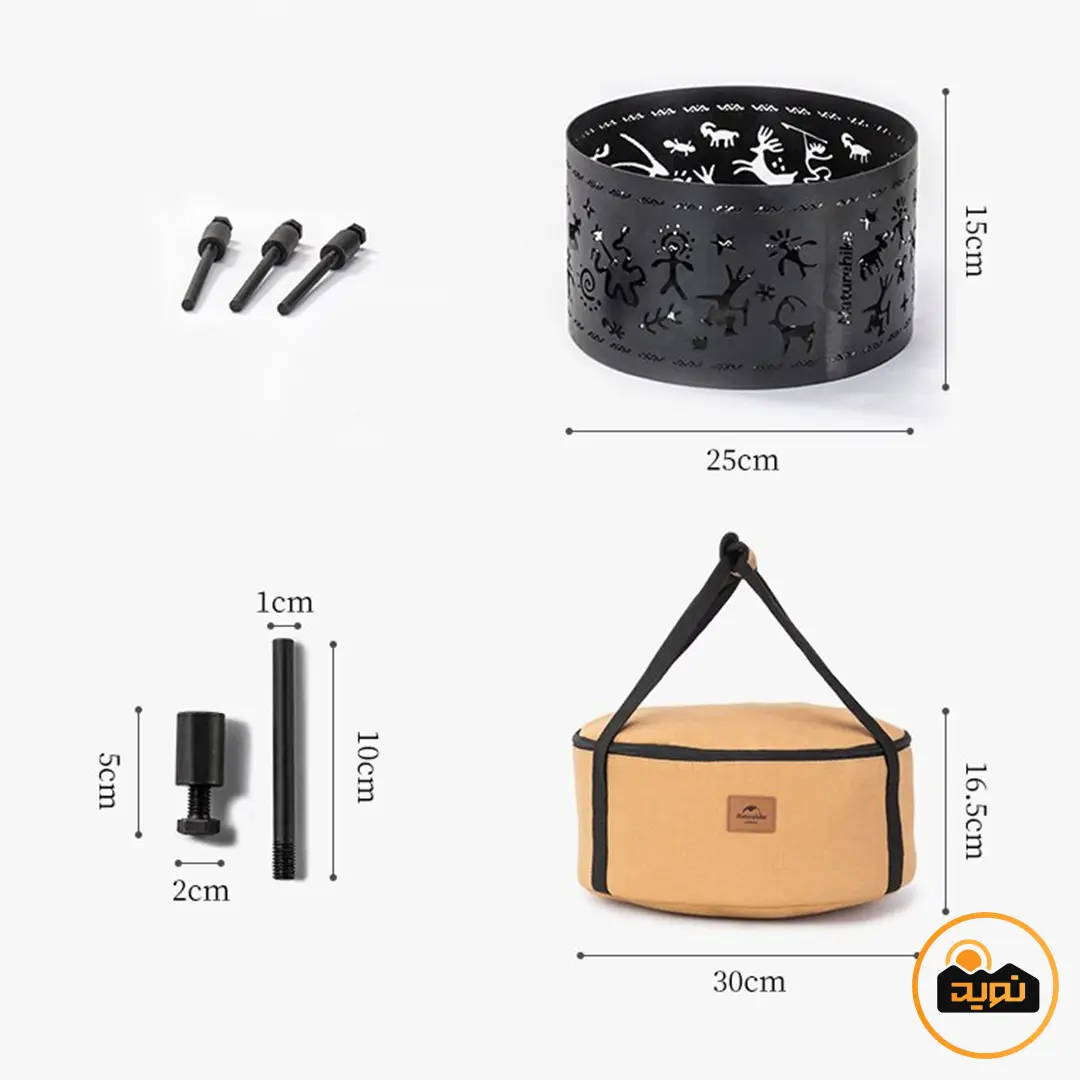 آتش دان نیچرهایک با ساختاری مقاوم از جنس آهن طراحی شده است تا در برابر حرارت مداوم و بالای ذغال و هیزم، پایداری خود را حفظ کند. طراحی دایرهای و مهندسیشده این محصول، مرکز ثقل پایینی ایجاد کرده که از واژگونی احتمالی در اثر باد یا برخورد ناگهانی جلوگیری میکند. این فایرباکس گرد با ابعاد بازشده 25 در 25.5 سانتیمتر، ظرفیت ایدهآلی برای گرم نگه داشتن یک گروه 3 تا 5 نفره در شبهای سرد کوهستان یا جنگل دارد.