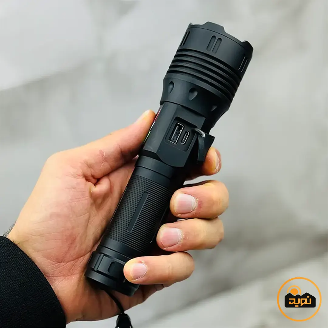 یکی از جذابیتهای فنی این نورافکن حرفهای، تعبیه نشانگر دیجیتال درصد شارژ روی بدنه مستحکم آن است. این نمایشگر هوشمند به شما اجازه میدهد تا با دقت کامل، از میزان انرژی باقیمانده مطلع شده و مدیریت بهتری بر زمان خود داشته باشید. همچنین، قابلیت زوم تلسکوپی این محصول به کاربر اجازه میدهد تا در کسری از ثانیه، بین یک نور پخش وسیع برای روشن کردن محیط اطراف و یک نقطه نوری متمرکز و بسیار دور، سوییچ کند. بدنه این کالا از آلیاژهای مقاوم ساخته شده که در عین استحکام بالا، ارگونومی بسیار خوبی برای استفادههای طولانیمدت دارد.