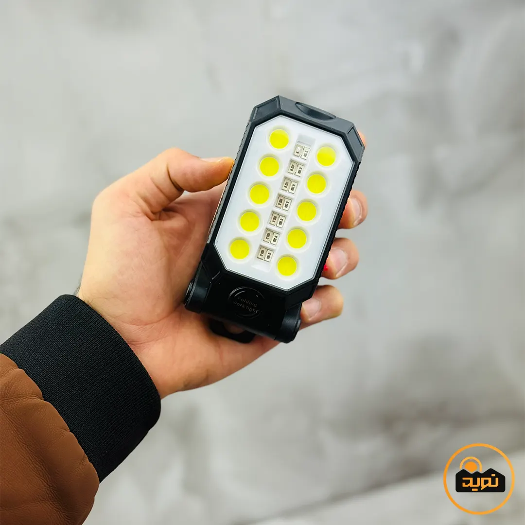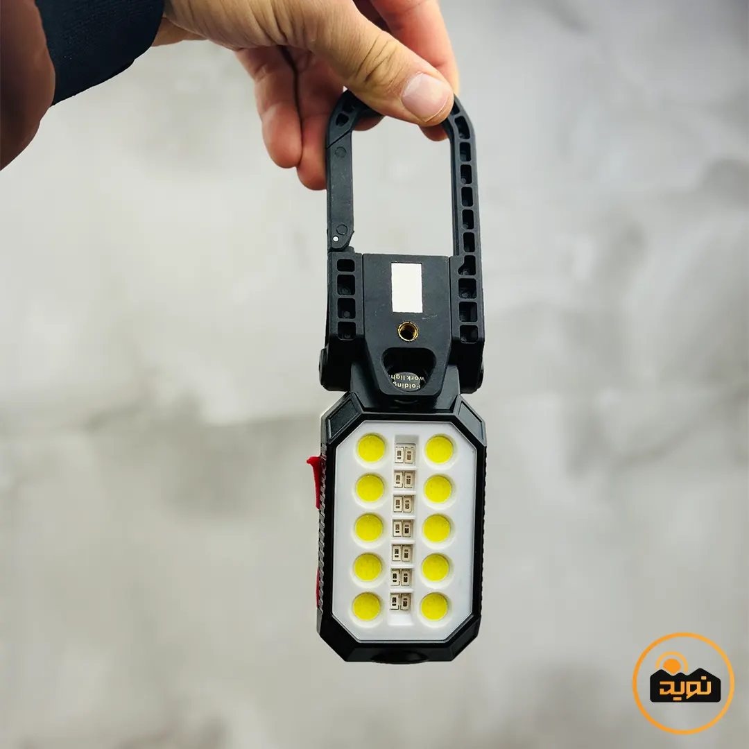 آنچه این منبع نور چندکاره را متمایز میکند، بهرهگیری از سیستم دوگانه نوری است. لامپ T6 تعبیهشده در بخش فوقانی، برد نور 150 متر را فراهم میکند که برای مسیریابی در شب ایدهآل است. در همین حال، پنل COB ده لامپه با ایجاد یک نور مهتابی یکنواخت و وسیع، محیط اطراف چادر یا میز کار شما را به خوبی روشن میسازد. یکی از جذابترین امکانات این کالا، وجود آهنربای قوی در پایه، دستگیره تاشو و قلاب کمری است؛ این ویژگیها به شما اجازه میدهند تا چراغ را به سطوح فلزی مانند کاپوت خودرو متصل کرده یا از سقف چادر آویزان کنید و دستان خود را برای انجام کارها کاملاً آزاد بگذارید.