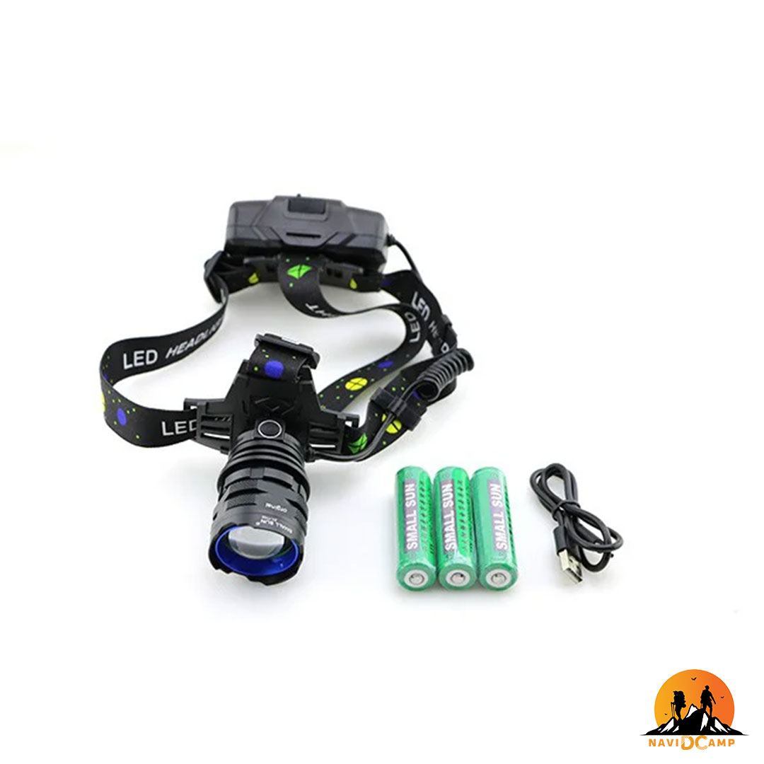 - محتویات داخل بسته : چراغ پیشانی اسمال سان SMALL SUN T702-3 عدد باتری 18650 لیتیوم یون 2400 میلی آمپر-کابل شارژ میکرو USB-C