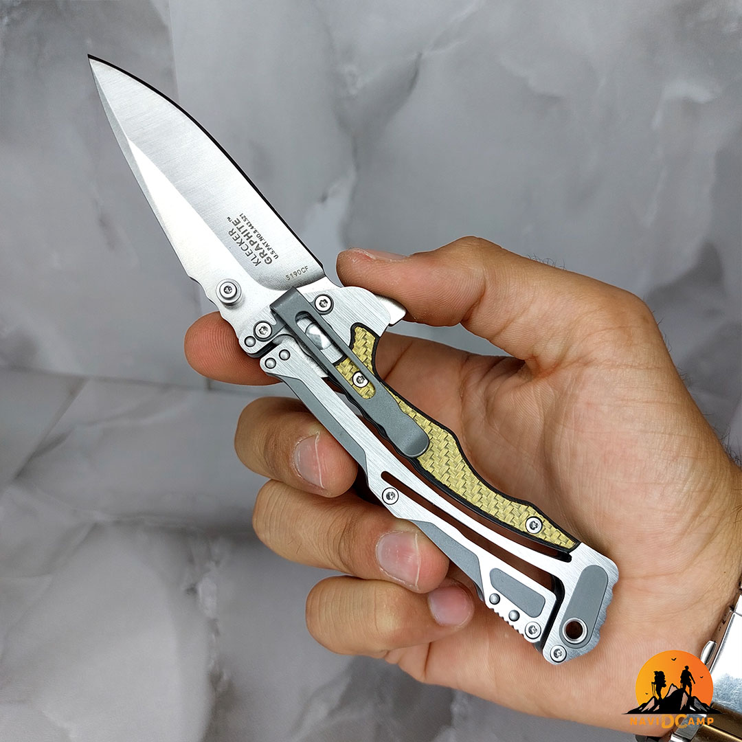 چاقو کوهنوردی CRKT مدل 5190CF یک چاقوی جیبی جالب است طراحی خاص و منحصر به فردی دارد. این چاقوی عالی دارای طراحی شیکی است که به رنگ طلایی و نقرهای بوده و همین آن را به یک محصول جذاب تبدیل کرده است.