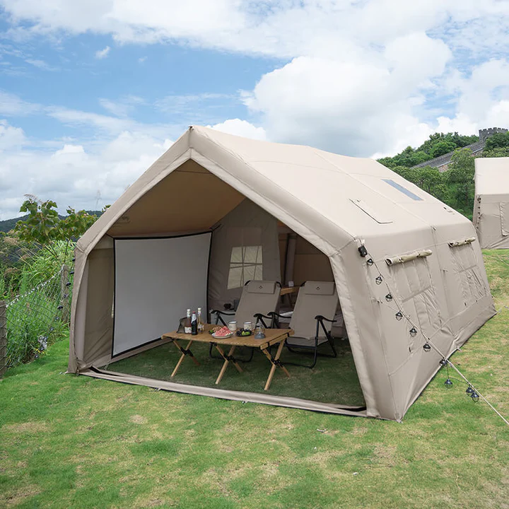 | نصب سریع و آسان | همراه با پمپ باد مخصوص چادر بهواسطه ستونهای بادی به سرعت با پمپ باد نصب میشود، که در مقایسه با چادرهای میلهای سنتی، بسیار سریعتر و راحتتر است |