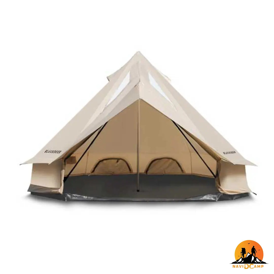 تهویه عالی برای یک گروه بزرگ: دو درب بزرگ و متقابل، که هر دو مجهز به پشهبند کامل هستند، یک سیستم تهویه متقاطع و بینظیر را ایجاد میکنند. در روزهای گرم تابستان، با باز نگه داشتن این دربها، نسیم به راحتی در داخل چادر جریان پیدا کرده و از ایجاد هوای دمکرده و سنگین جلوگیری میکند. نورگیرهای سقفی نیز به این جریان هوا کمک کرده و روشنایی طبیعی را در طول روز فراهم میآورند.