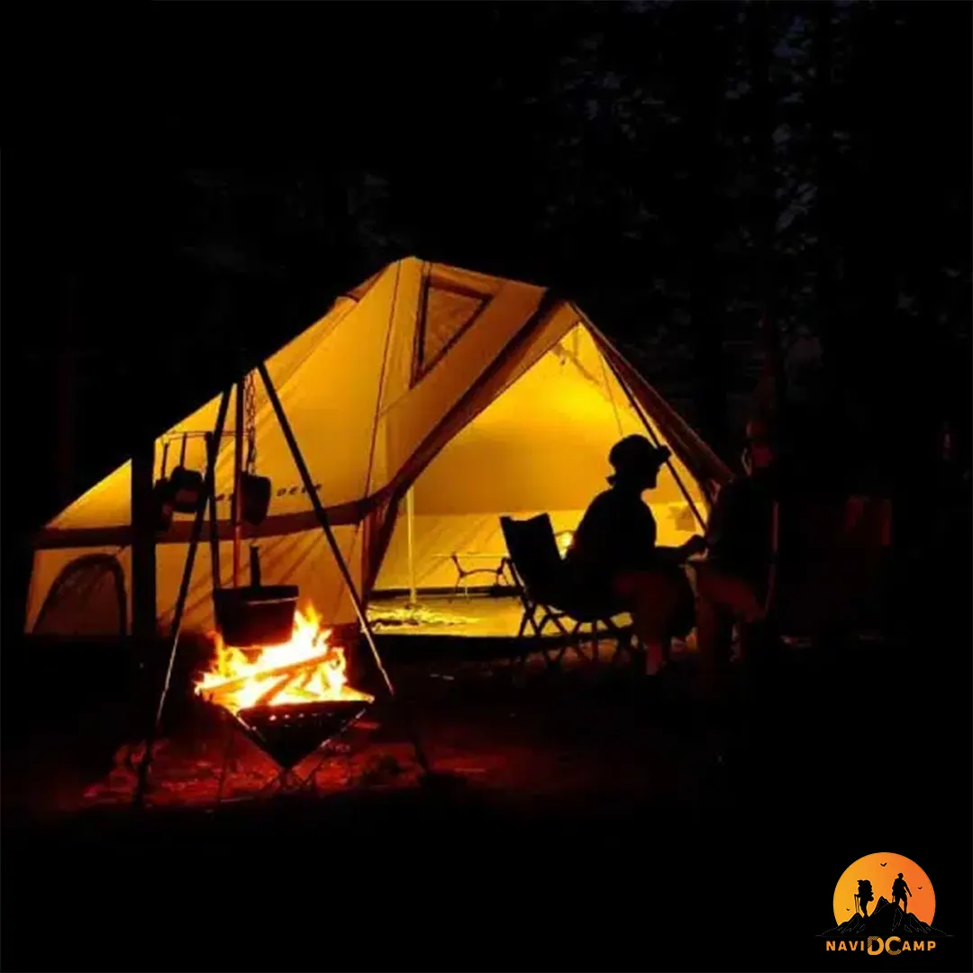 | طراحی سرخپوستی (Tipi Style) | طراحی این چادر به سبک سرخپوستی (Tipi) انجام شده که علاوه بر زیبایی و جذابیت بصری، عملکردی کاربردی دارد. این فرم باعث توزیع بهتر فشار باد، استحکام بیشتر در شرایط سخت و همچنین تهویه بهتر نسبت به چادرهای معمولی میشود |