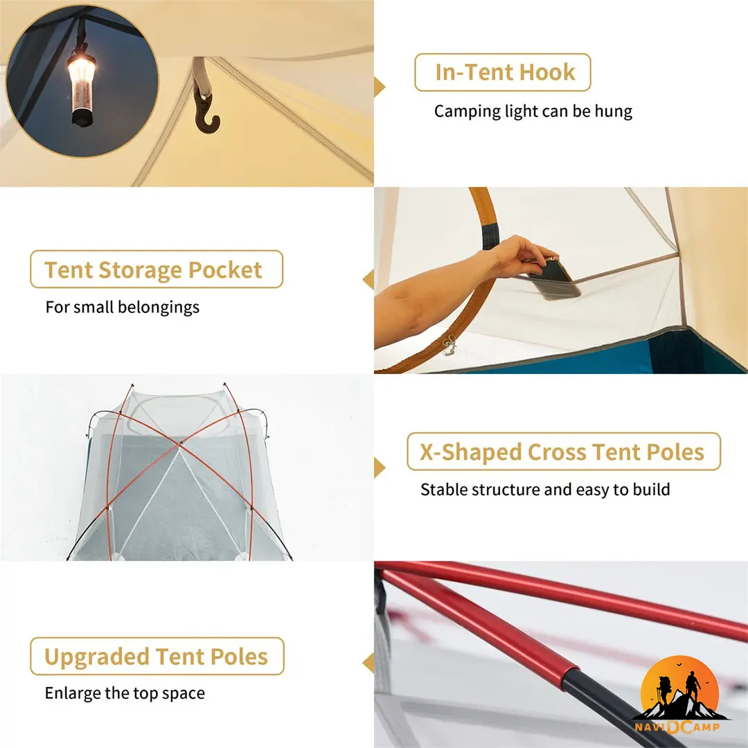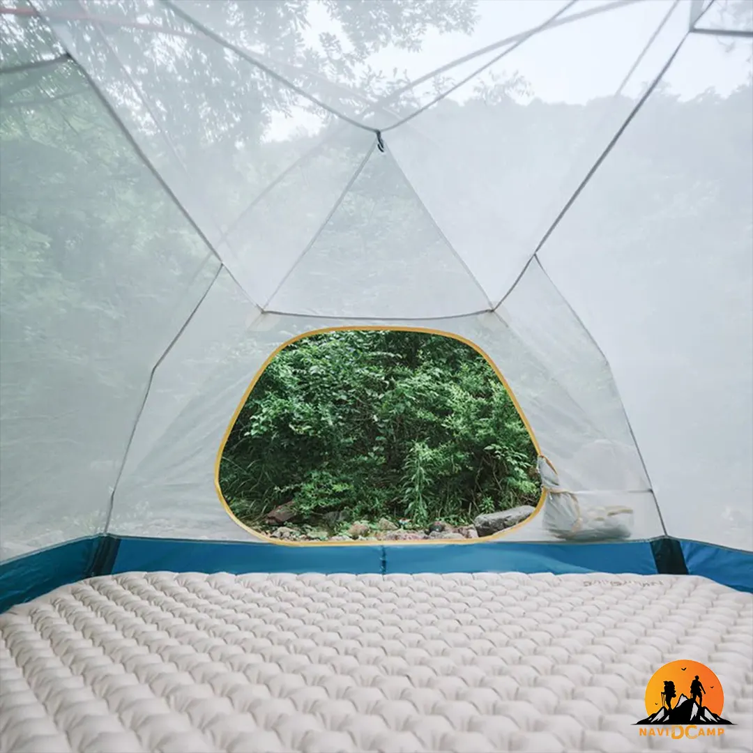 لایه توری داخلی با تهویه 360 درجه: لایه داخلی از ترکیب پارچه و توریهای مش B3 با تراکم بالا ساخته شده است. این طراحی هوشمندانه، از یک سو گردش مداوم هوا را ممکن ساخته و از تجمع رطوبت و قطرات آب (تعریق چادر) جلوگیری میکند، و از سوی دیگر، شما را از ورود کوچکترین حشرات در امان نگه میدارد.