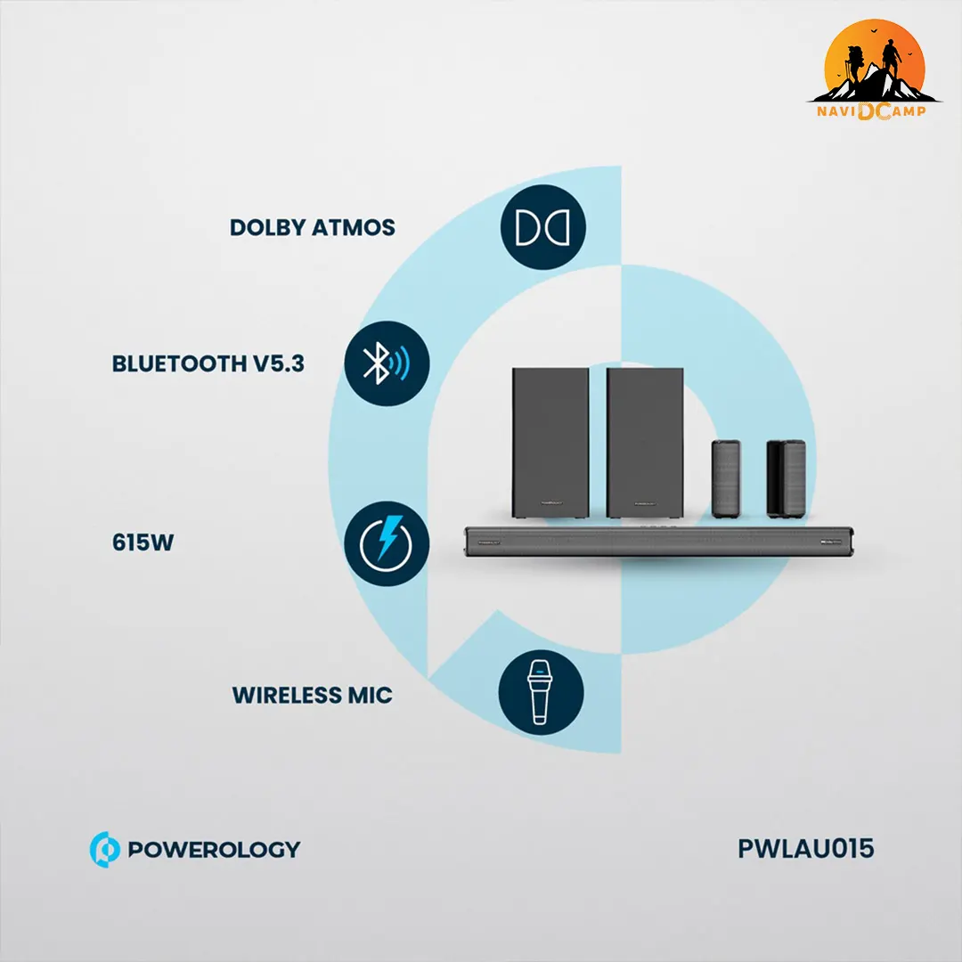 خرید سینما خانگی بیسیم پاورولوژی مدل PWLAU015 اورجینال با توان خروجی 615 وات و بلوتوث 5.3. دارای ووفر دوگانه، برد 10 متر و درایورهای قدرتمند برای صدایی فراگیر و باکیفیت. مناسب برای تجربهای بینظیر از تماشای فیلم و موسیقی.