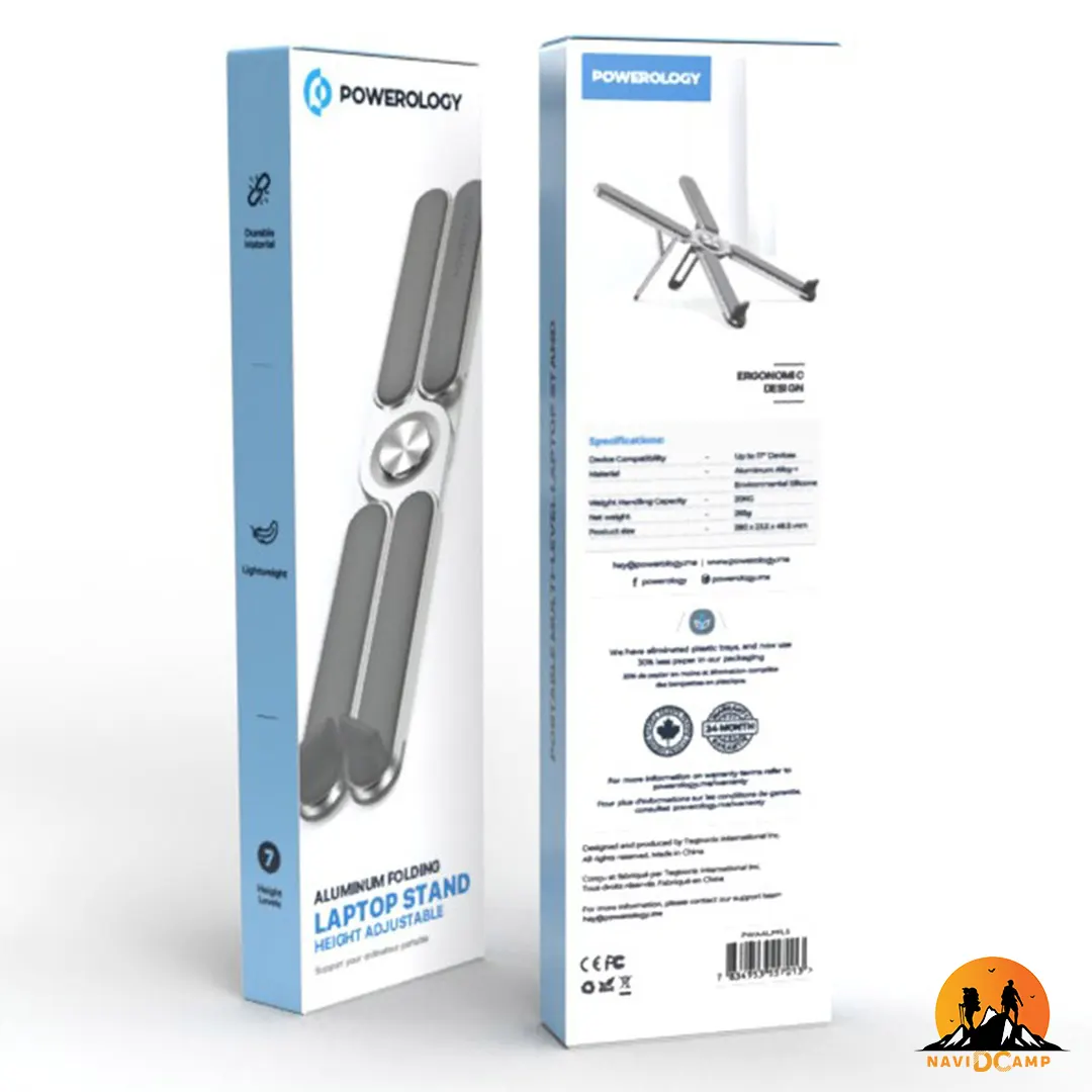 Powerology Adjustable Aluminium Alloy Portable and Foldable Laptop Stand - Silver PWAALPFLS
