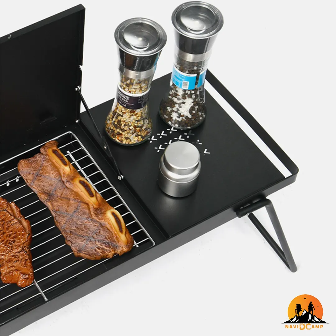 این منقل حرفهای با وزن تقریبی 3.15 کیلوگرم، توازنی بینظیر میان استحکام سازه و قابلیت حمل برقرار کرده است. یکی از بزرگترین مزایای استراتژیک این کالا، طراحی کاملاً تاشوی آن است که در حالت بسته تنها 6 سانتیمتر ضخامت دارد؛ این یعنی به سادگی در میان سایر تجهیزات کمپینگ در صندوق عقب خودرو جای میگیرد. با این حال، در حالت استفاده با طولی معادل 76 سانتیمتر، فضای بسیار سخاوتمندی را برای گریل کردن همزمان انواع گوشت و سبزیجات در اختیار شما قرار میدهد. فروشگاه تخصصی نویدکمپ (NavidCamp) این محصول اورجینال را به همراه مجموعهای کامل شامل سینی زغال، توری گریل و میله بالابر مخصوص عرضه کرده است تا امنیت و راحتی شما در حین آشپزی کاملاً تضمین شود.