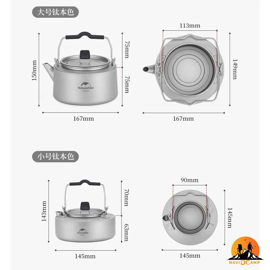 Naturehike 0.8 liter titanium kettle model NH21CJ007