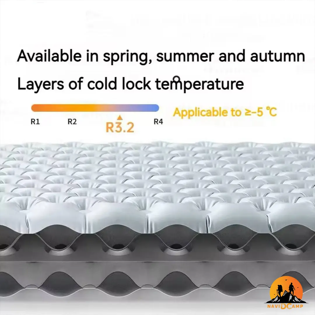 جنس رویه این پد خواب دو نفره از پارچه پلیاستر 190T Chunya Spinning با روکش TPU ساخته شده است. این ترکیب متریال، علاوه بر ایجاد خاصیت صددرصد ضدآب، مقاومت بالایی در برابر پارگی، سایش و نفوذ رطوبت دارد. ساختار ارگونومیک سلولهای هوا به گونهای طراحی شده که فشار وزن دو نفر را به صورت یکنواخت توزیع کرده و با ضخامت قابل تنظیم بین 8 تا 9 سانتیمتر، ناهمواریهای سطح زمین سنگریزه و ریشه درختان را کاملاً دفع میکند.